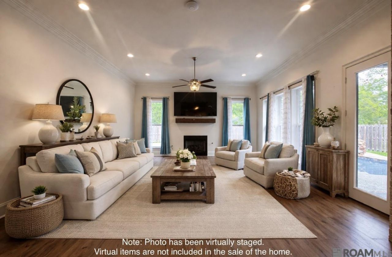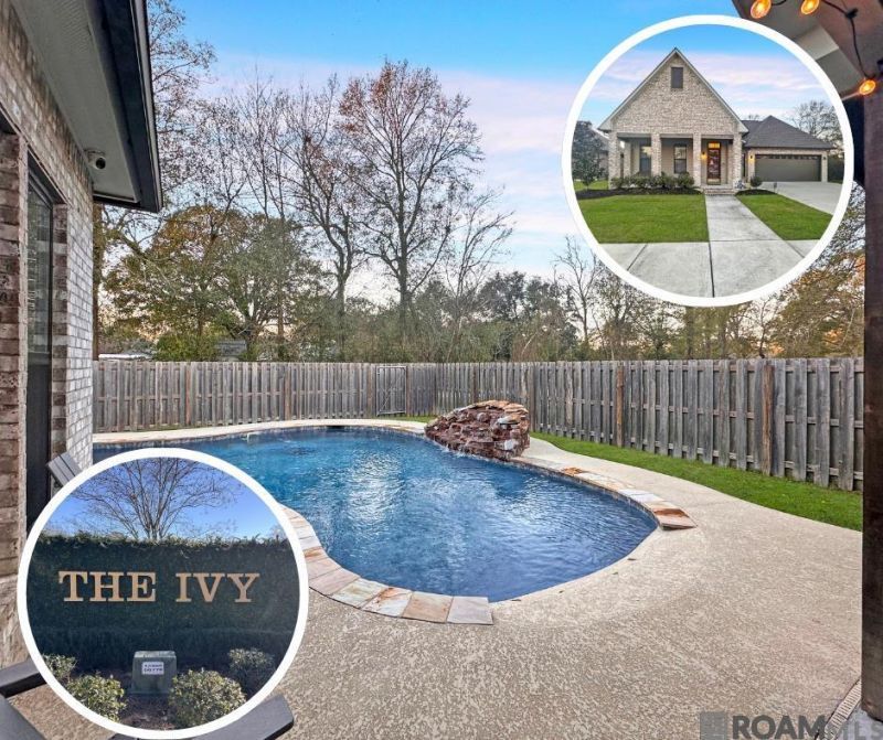 PRICE REDUCED!! Welcome to this stunning custom home in The Ivy Subdivision, located in the heart of Denham Springs and loaded with high-end upgrades for luxury living and entertaining. Enjoy your own backyard oasis featuring an in-ground gunite saltwater pool with rock wall water feature, beach entry, and CoolCrete decking, all enclosed by a full cedar shadow box fence with gates on both sides. Additional exterior features include an extended covered patio, outdoor bricked kitchen with sink, griddle, mini fridge and Green Egg, full-house Generac generator, gutters, and access to a rear right-of-way. Smart home technology is integrated throughout, including WiFi-controlled Nest thermostat, garage door, security system, pool, generator, smoke detectors and whole-home wireless system, all centralized in a ventilated tech closet. Inside, the open floor plan offers tall ceilings, crown molding, luxury vinyl tile, designer lighting, a bar with wine rack, and a living area highlighted by a gas fireplace with wood beam mantle, brick columns, and expansive windows overlooking the pool. The gourmet kitchen features quartz countertops, custom cabinetry to the ceiling, farm sink, walk-in pantry, gas cooktop, wall oven, built-in microwave, refrigerator, custom hood, and beautiful backyard views. The oversized primary suite boasts double vanities, a freestanding soaker tub, custom tiled shower, and large walk-in closet. Two additional bedrooms, a mud bench off the 2-car garage, oversized storage room with backyard access, custom tile throughout, and a view of a majestic oak tree from the front porch complete the home. Located in Flood Zone X (no flood insurance required) and the top-rated Livingston Parish School District, The Ivy offers sidewalks, curb and gutter streets, dog park, playground, gathering spaces, and a nature trail. All the upgrades are done?just move in and start enjoying. Schedule your private showing today!