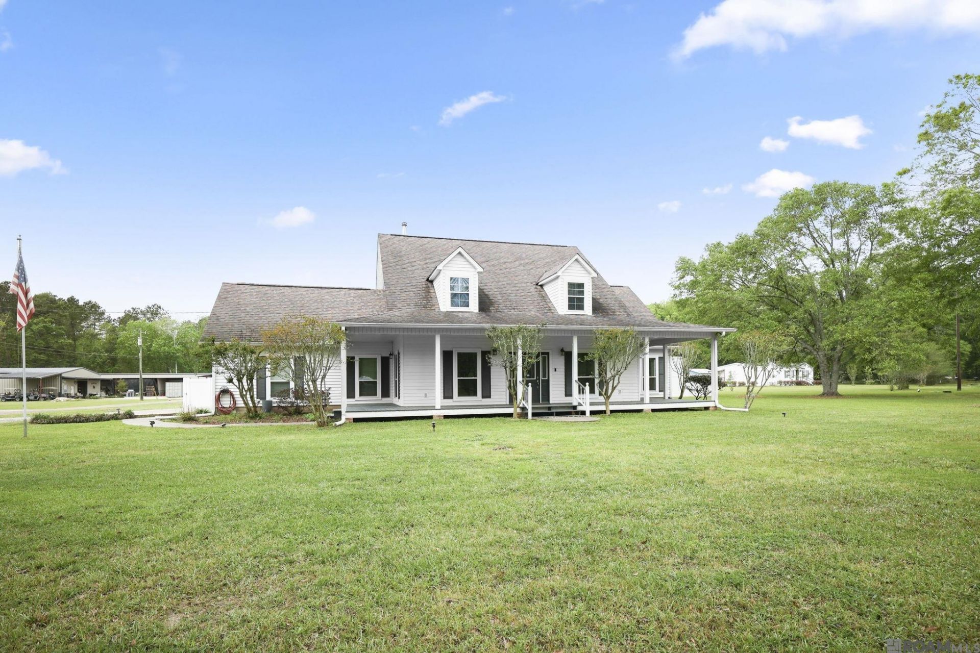 Welcome to this stunning custom-built, one-owner ranch-style home nestled on 3.05 peaceful acres in a quiet setting (additional acreage available). From the moment you arrive, you'll be captivated by the inviting wraparound front porch and the spacious covered back porch, perfect for relaxing or entertaining. This beautifully maintained home features 3 bedrooms, 2.5 bathrooms, a dedicated office, and an additional upstairs bonus room offering flexible space for your needs. The entire first floor was freshly painted in 2026, enhancing the home's bright and updated feel. Step outside to your private backyard oasis complete with a large in-ground pool featuring a brand-new liner (2025), and an impressive 25 x 28 outdoor kitchen and bar area, ideal for hosting gatherings. The home's porch area has also been refreshed with new boards and paint in 2025. For those needing space and functionality, the property includes a 36 x 36 barn with stalls and a huge custom arena, perfect for equestrian use. Major updates provide peace of mind, including all windows replaced in 2017, along with the roof and AC system, and water heaters replaced in 2018. Located in Flood Zone X, this property does not require flood insurance and has never flooded. This one-of-a-kind property offers the perfect blend of comfort, functionality, and outdoor living, there is truly so much to love.