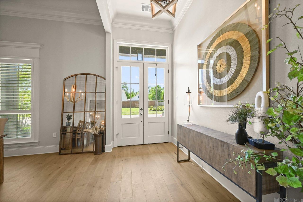 PLEASE CONTACT MEGAN SUAREZ WITH REGIONS BANK FOR A RATE INCENTIVE. This stunning Acadian style home sits on a nearly 1/2 acre lot that features amazing views of your own backyard pool and neighborhood pond. An entertainer's dream as the home contains a triple split floor plan, high ceilings, brick fireplace and columns, and wood beams. The kitchen has an oversized island, gas cooktop, double ovens, quartz countertops, and stainless steel appliances. There is a breakfast nook area as well as a formal dining space. The living room overlooks the outside living space and has built-ins that frame the gas log, brick fireplace. Additionally, there is another living space near the rear of the home that the current owners use as their library and media room. This room features custom built ins and 2 large storage closets where one can be utilized as an office space. The primary bedroom overlooks the backyard and has tray ceilings and an ensuite bathroom. The primary bathroom homes the large walk-in closet as well as a tile shower, soaking tub, and water closet. On the opposite side of the living room there are 2 bedrooms that share a jack and jill bathroom. The 4th bedroom is located near the bonus room and there is a full size bathroom down this hallway as well. The exterior living area has an outdoor kitchen that includes a fridge, sink, and grill, as well as a fireplace. The current owners added outdoor fans and surround sound, had dirt work done, new sod laid, updated front and rear landscaping, and added french drains as well as recently re-tiling the pool. As if this home couldn't get better, it contains a whole home generator! Gun safe and gym equipment are negotiable. Schedule your showing today!