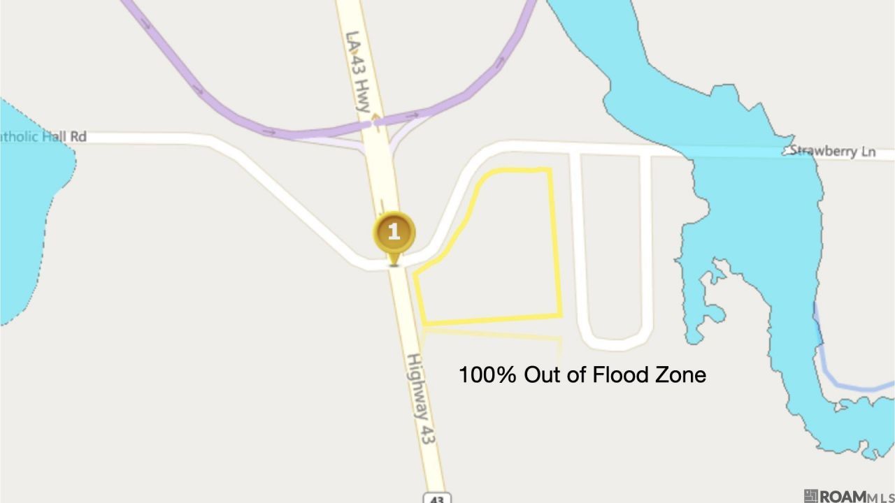 2.67 Acres on the S. E. Quadrant- High visibility/Almost Constant Traffic. No Wetlands. Property is on LA Hwy 43 and Strawberry Lane. It is across from St. Margaret Catholic Church and the Livingston Parish Tourism Center.